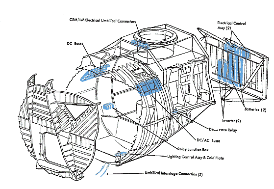The Electrical Power Subsystem consists of the following major components: foursilver-zinc Descent batteries, two Descent electrical control assemblies, two silver-zinc Ascent batteries, two Ascent electrical control assemblies, a relay junetion box, a deadface relay, two circuit breaker panels, two inverters, and one lighting control assembly.
