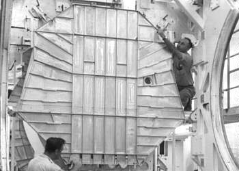 Machined foward bulkhead midsection to be joined to skins, decks and docking tunnnel.